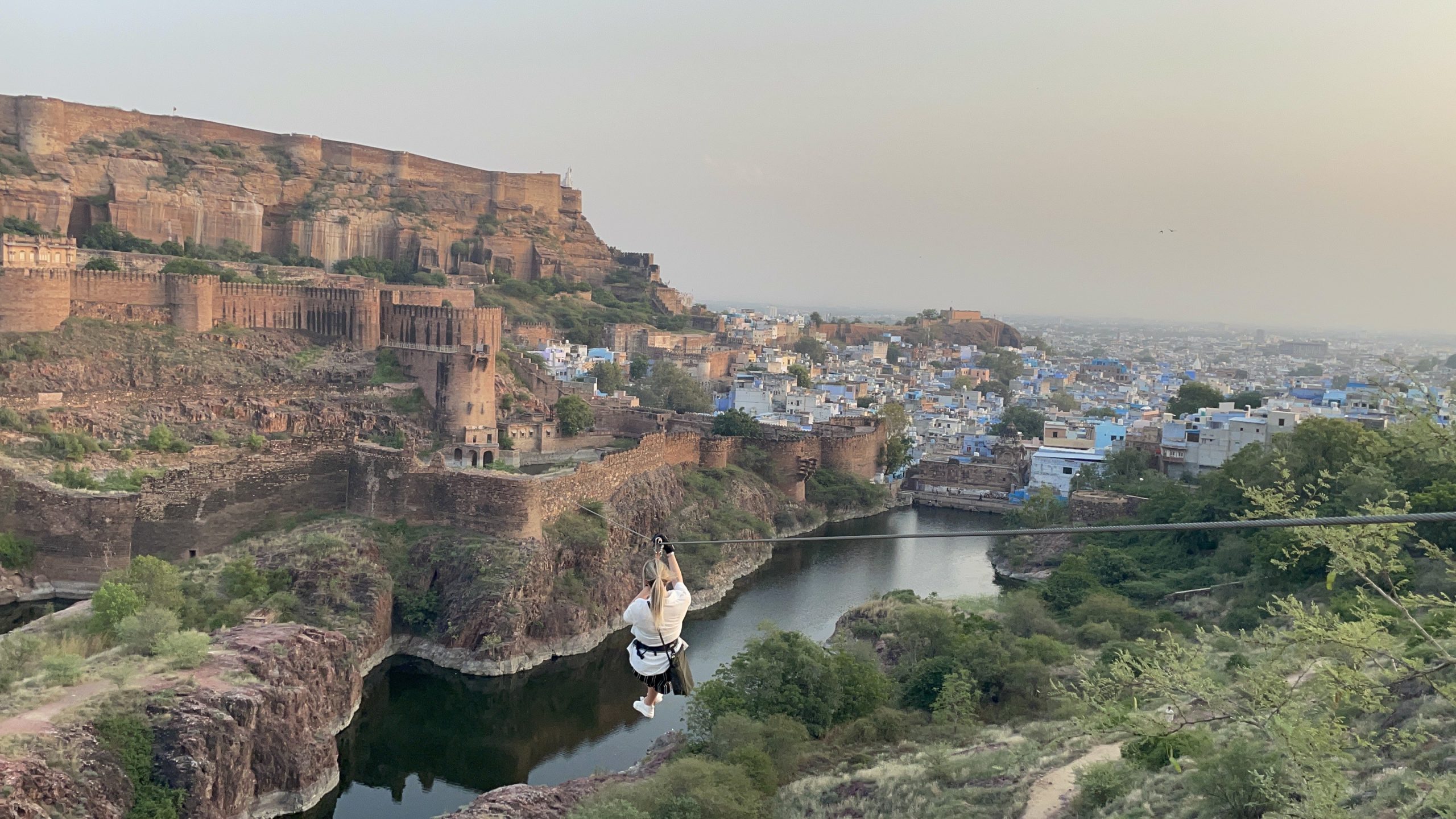 One of the most exciting activities I did in Jodhpur was zip lining with the company Flying Fox Jodhpur. This experience gave me jaw-dropping views of Mehrangarh Fort and the entire Blue City. Although it was terrifying, the company took all the necessary safety precautions, and I couldn’t fault the experience.