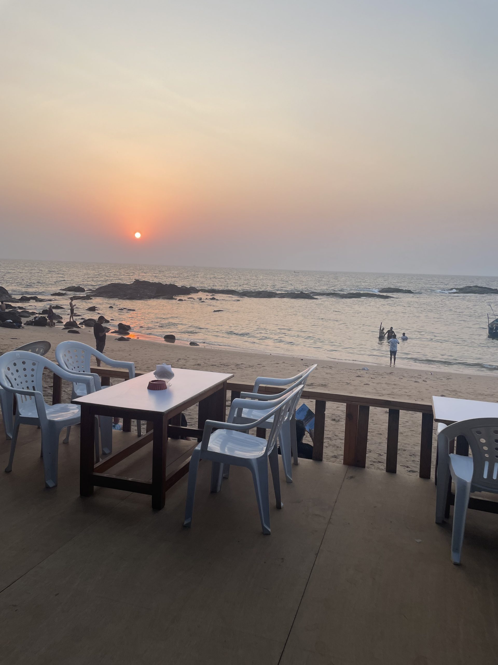 In North Goa, I stayed just a short walk from Anjuna Beach, a beautiful palm-shaded spot famous for its sunsets. I was lucky enough to catch a few of those stunning sunsets during my stay.